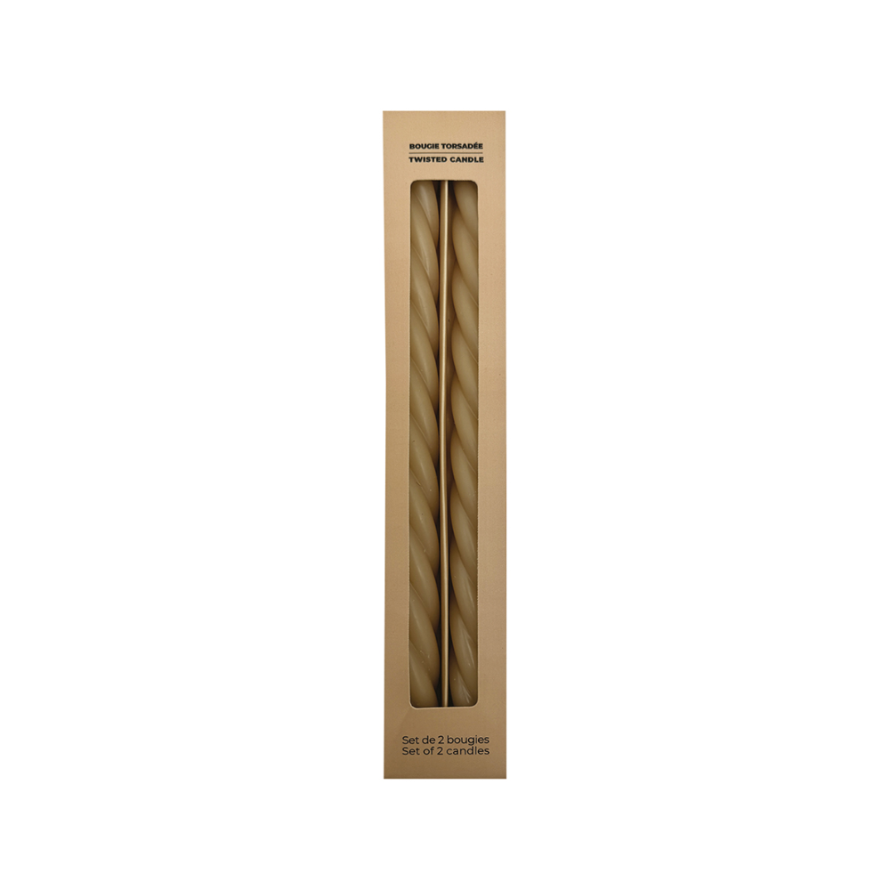 Beige Twisted Taper Candles – Set of 2