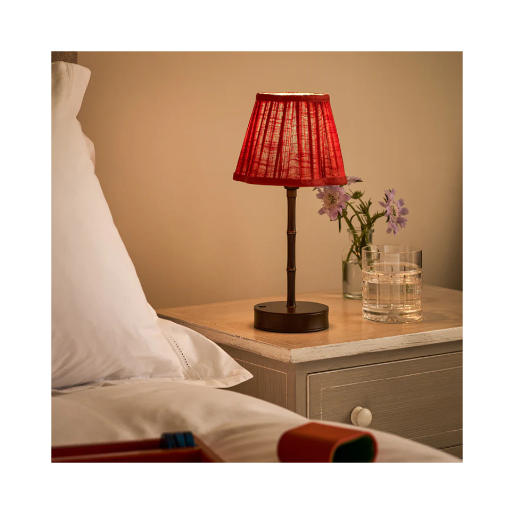 Elevate your space with the elegant rechargeable Bamboo LED Lamp Base in a refined bronze finish. Crafted for style and convenience, the rechargeable and cordless lamp delivers up to 10 hours light on a single charge. With three adjustable brightness levels, this lamp lets you set the perfect ambience – choose a soft, warm glow for a relaxed mood, or a bright, focused light for tasks and reading.