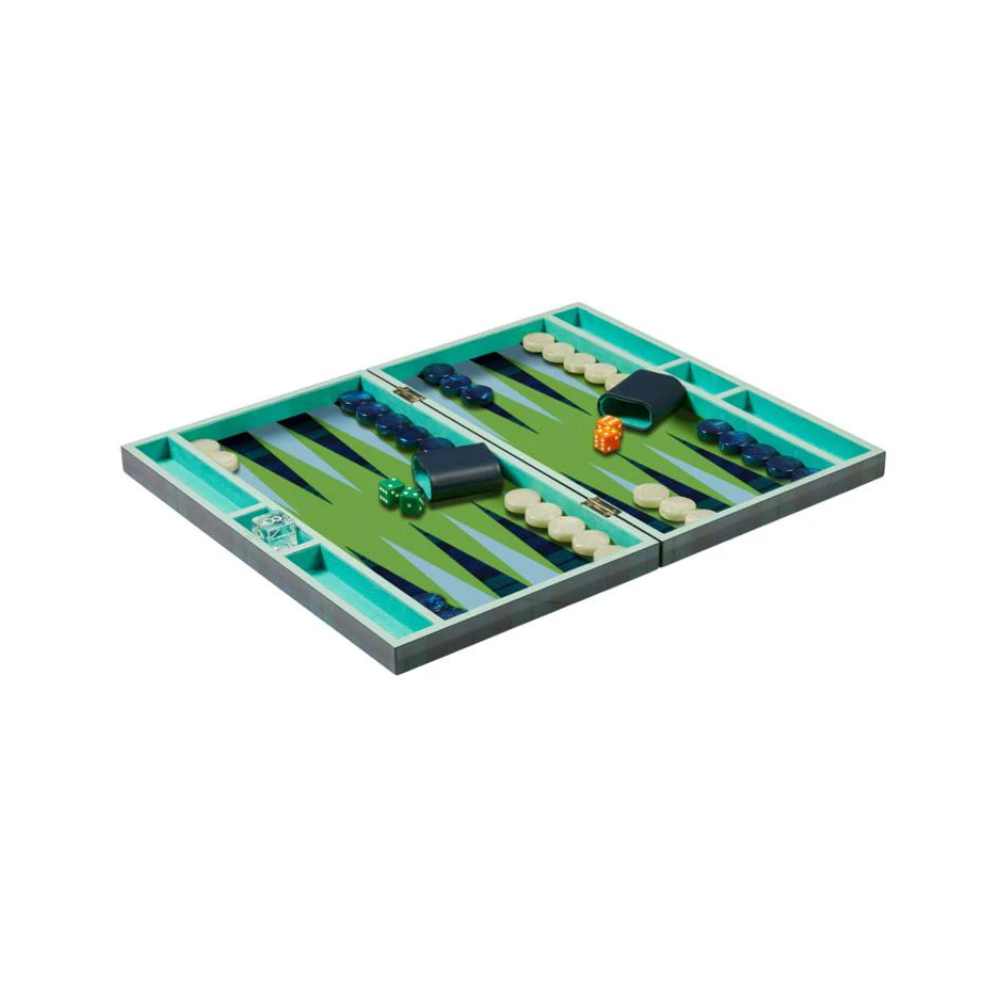 Discover the art of play with the Addison Ross backgammon set, where vibrant style meets masterful craftsmanship. The lacquered Black Watch Tartan exterior and vibrant Eau De Nil suede interior create a stunning visual, while mother-of-pearl effect chips, leather-and-suede shakers, four precision dice, and a classic doubling cube ensure every game feels indulgent. Measuring 47cm x 28.5cm, it’s perfect for showing off on your coffee table or diving into a lively game night.